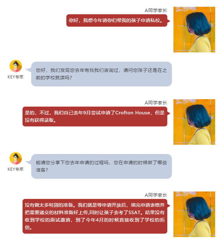 今天,KEY特意准备了过去的两个招生年-非招生年申请家庭的案例供各位家长参考:
