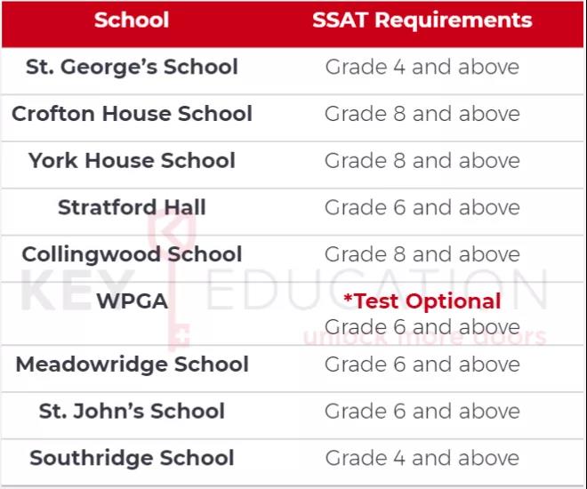 上图是2020-2021申请季,大温地区重点私校对于SSAT标化考试成绩的要求,在上周的文章中KEY深入的介绍了SSAT标准化测验的分级、测试题型与备考时间线,如果还没读过上周文章的家长建议从这篇文章开始阅读(【KEY独家】私校入学敲门砖,SSAT备考全攻略)