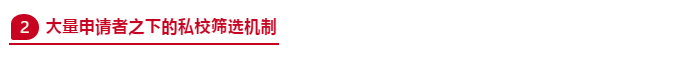 以2020年的私校申请来说,Vancouver College出现超过1000名的申请者,竞争着只有100名的8年级录取名额,又或是WPGA收到上千名的申请书,如此大量的申请资料也造成了招生办在消化上的难度,因此许多私校如WPGA与St. George's School等私校都将经过多轮的筛选,若基本的学术能力(校内成绩、标准化测验SSAT与私校测评)没有达到基本门槛,将无法进入到下一轮的评估,而最后也只有极少数的家庭可以进入个人面试的最终筛选。