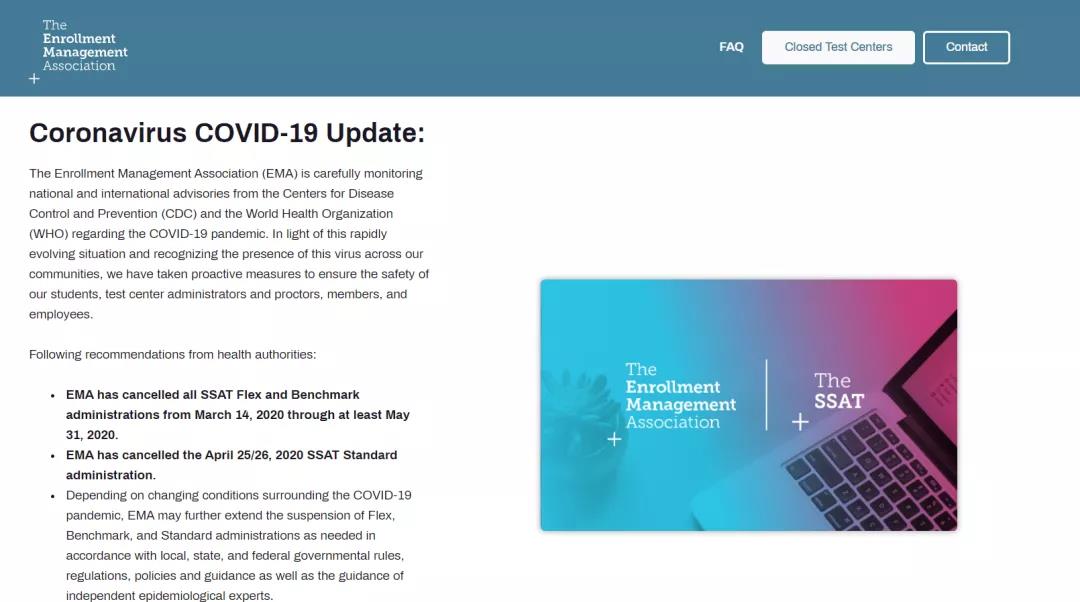 特别是SSAT标准化测验,4月25日的考生(包括2月与3月转考到4月的考生)将延期到6月13日进行,并依照未来个国家考场的疫情状况进而宣布考试是否如期举行。