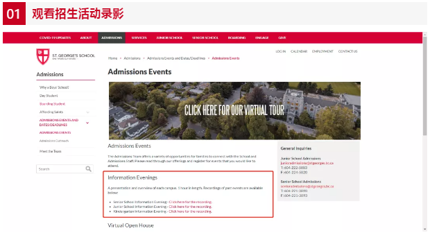 部分学校如St. George's School, WPGA, York House School等学校都有将春季举办的招生信息分享会影片上传到学校官方网站,错过的家长可以通过观看回放的影片,第一手的掌握学校所提供的招生信息,进一步的学校有深入的了解。