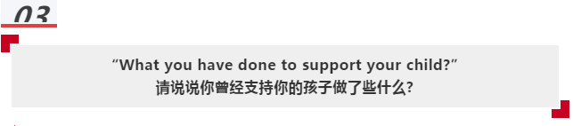 有事前做过准备的家庭,肯定已经把学校的网页浏览了无数遍,可以针对提问具体地说出学校有哪些的特色课程、教学理念、课外活动俱乐部是你所欣赏的