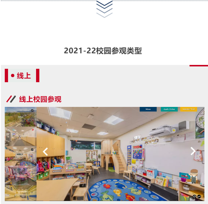 与去年情况类似,今年大多数私校都采用线上"云"参观,通过线上360度虚拟校园参观带领家长认识学校的校园样貌、硬体设备。同时由校方招生人士或老师对学校进行系统介绍。